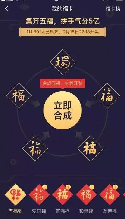 1、支付宝2018五福玩法:从2月6日到2月15日 全民瓜分5亿